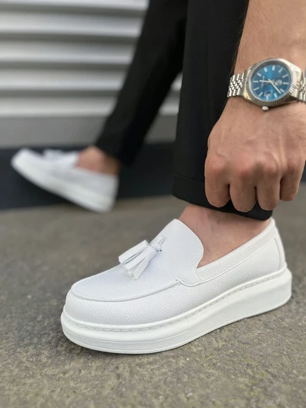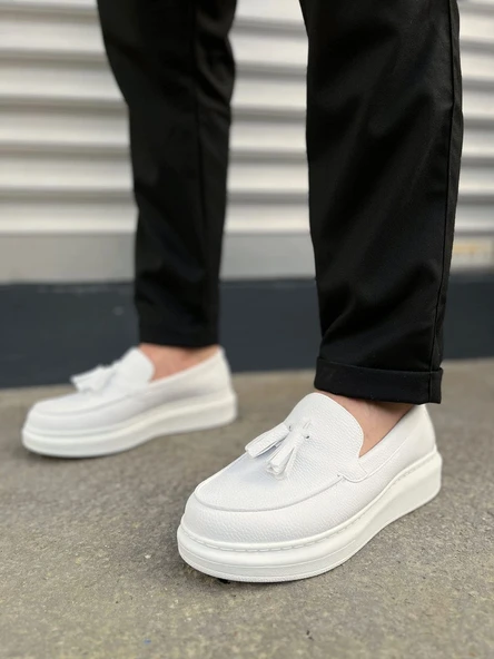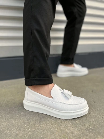 JY154 Blaze Bağcıksız Püsküllü Cilt Erkek Günlük Spor Klasik Ayakkabı CBT - Beyaz