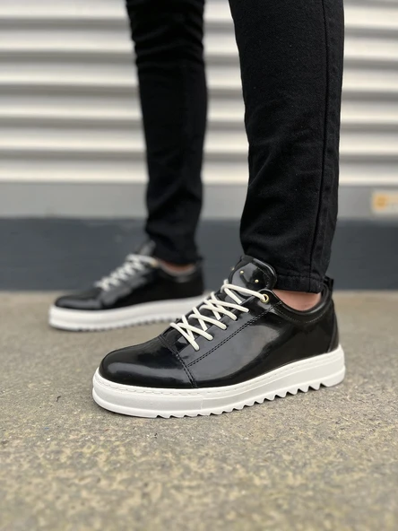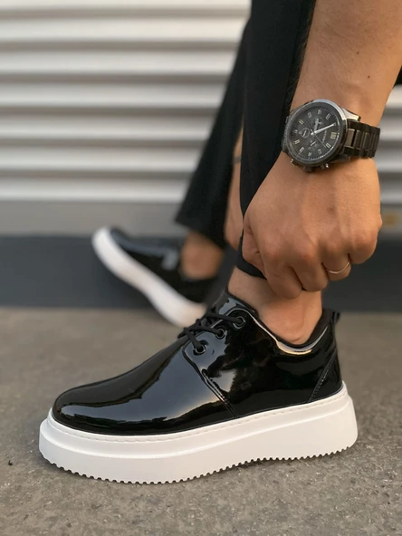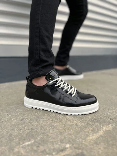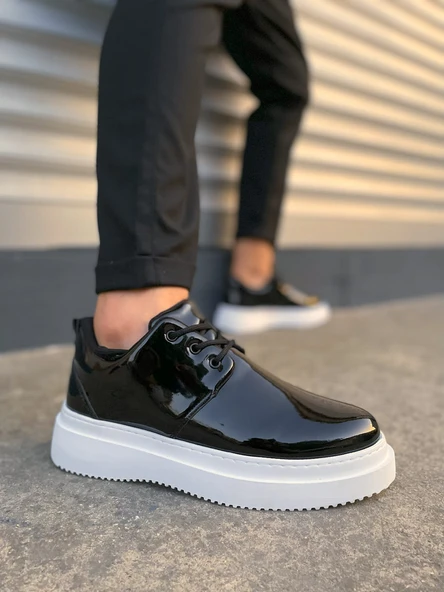JY152 Cool Bağcıklı Rugan Erkek Günlük Spor Klasik Ayakkabı RBT - Siyah