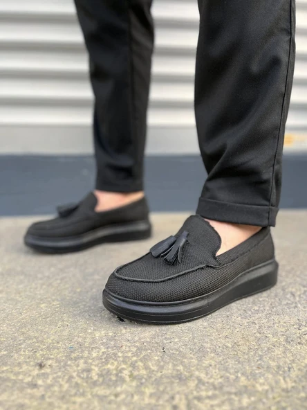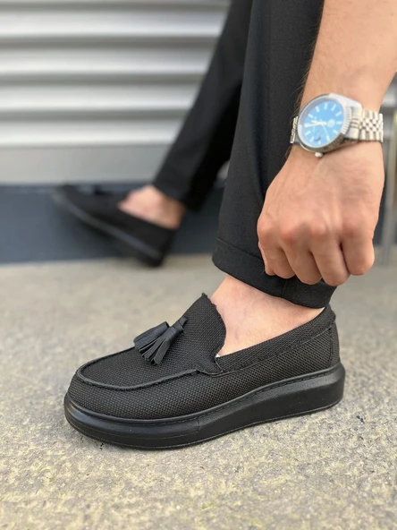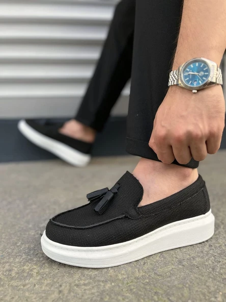 JY154 Blaze Bağcıksız Püsküllü Keten Erkek Günlük Spor Klasik Ayakkabı KST - Siyah