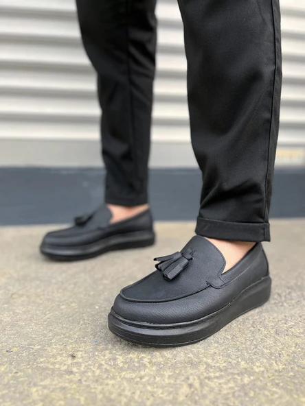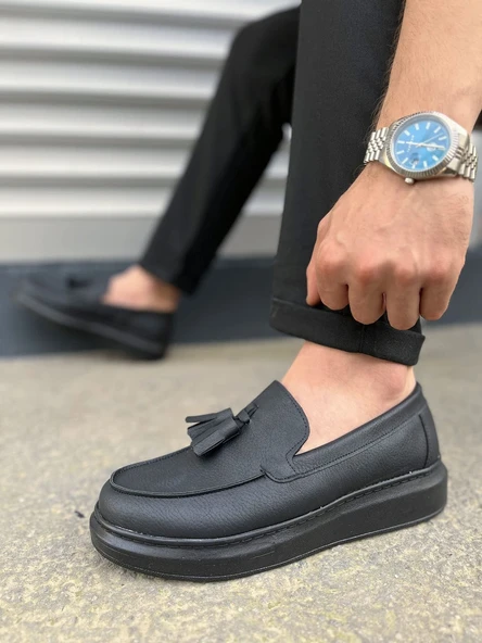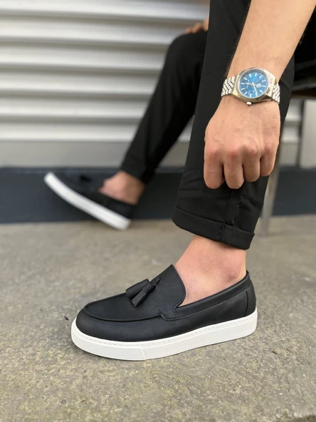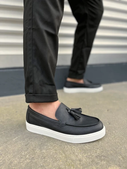 JY154 Blaze Bağcıksız Püsküllü Cilt Erkek Günlük Spor Klasik Ayakkabı CST - Siyah
