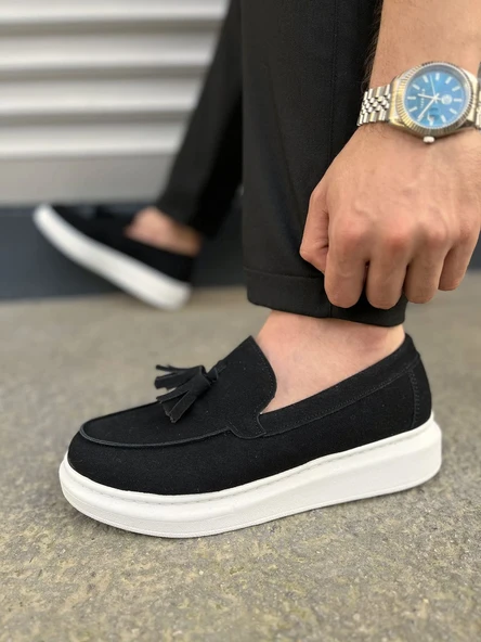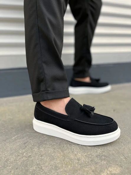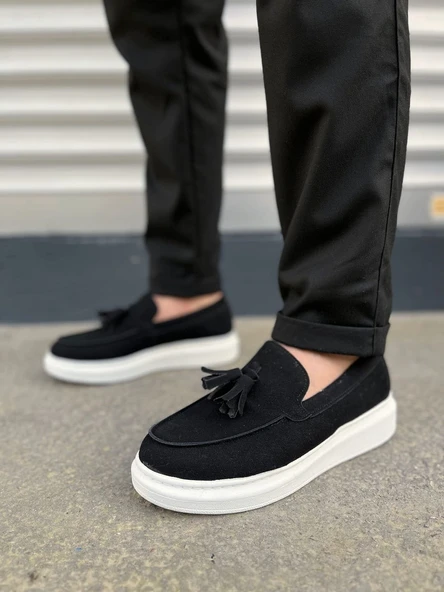 JY154 Blaze Bağcıksız Püsküllü Süet Erkek Günlük Spor Klasik Ayakkabı SST - Siyah