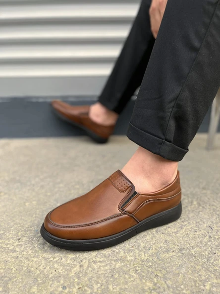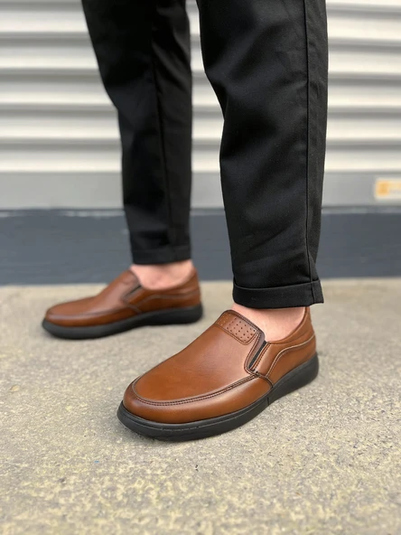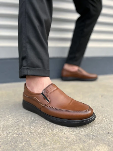 JY0410 Classique Bağcıksız Cilt Erkek Günlük Klasik Ayakkabı CST - Kahverengi