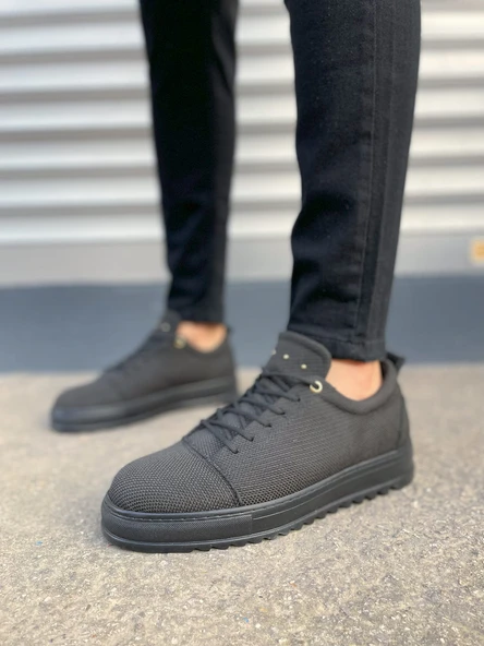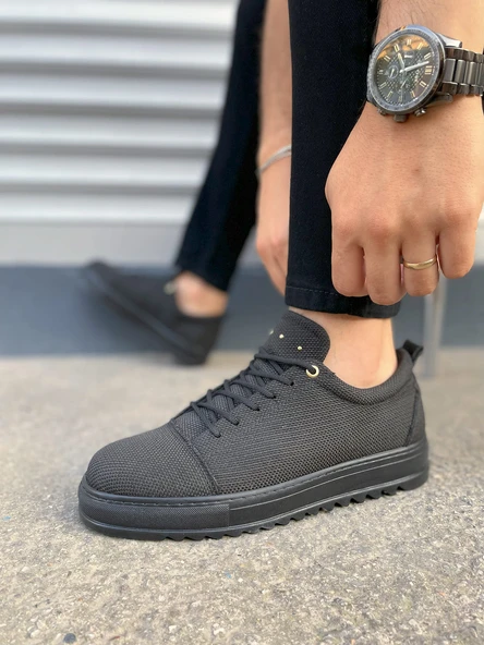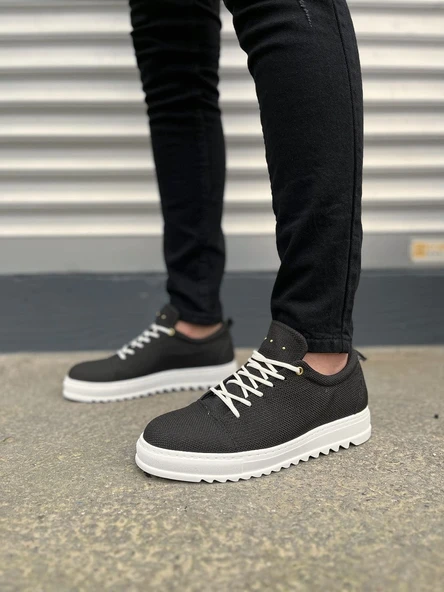 JY152 Cool Bağcıklı Keten Erkek Günlük Spor Klasik Ayakkabı KBT - Siyah