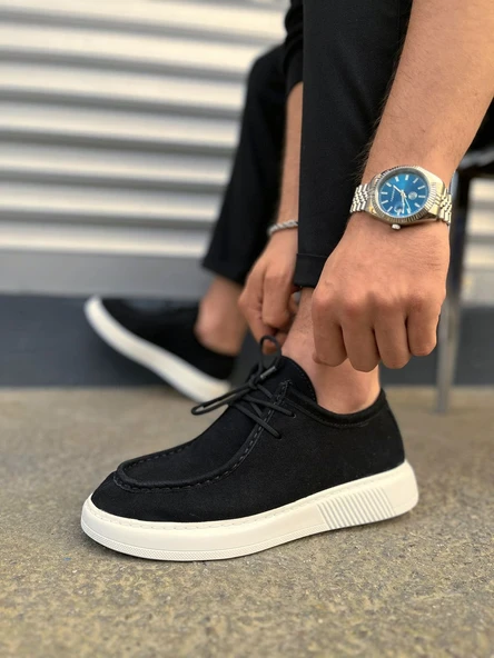 JY0610 Clasico Bağcıklı Süet Erkek Günlük Klasik Ayakkabı SST - Siyah