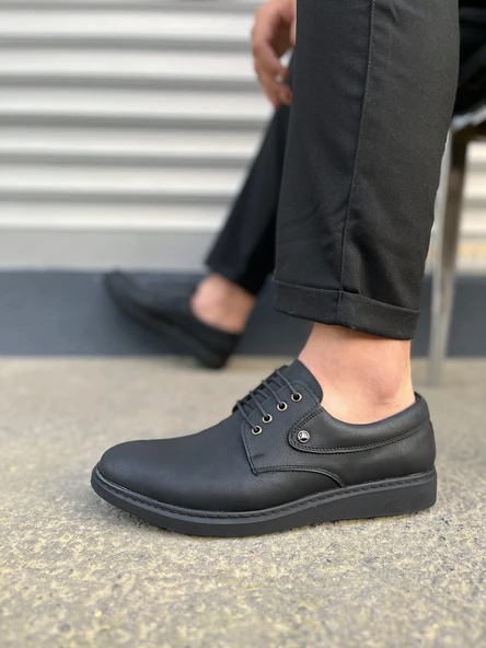 JY0610 Clasico Bağcıklı Cilt Erkek Günlük Klasik Ayakkabı CST - Mat Siyah