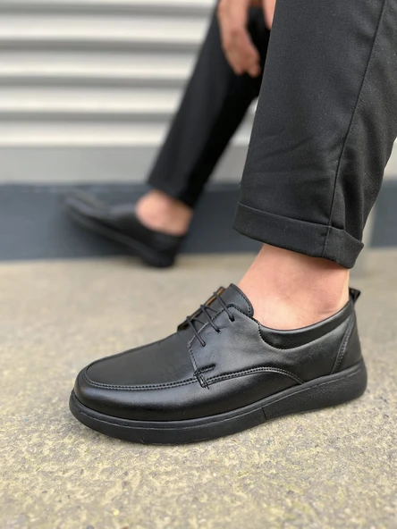 JY03 Luxor Bağcıklı Cilt Erkek Günlük Spor Klasik Ayakkabı CBT - Siyah