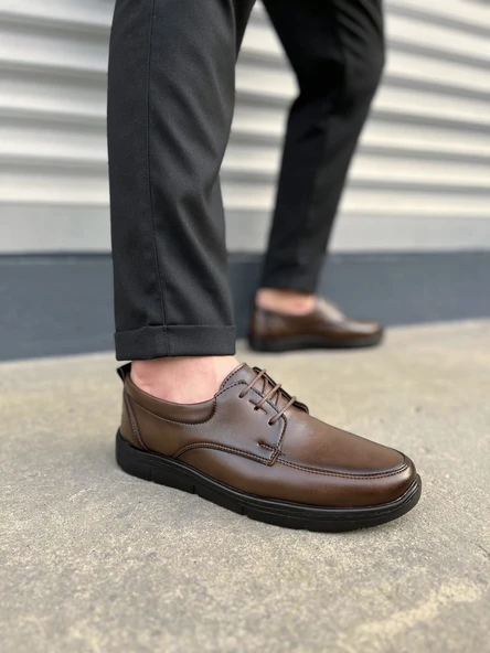 JY0510 Clasica Bağcıklı Cilt Erkek Günlük Klasik Ayakkabı CST - Kahverengi