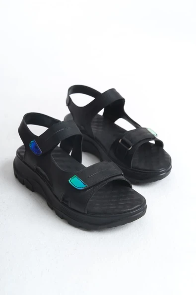 LAMIA Cırt Cırtlı Ortopedik Taban Kadın Sandalet CST - Siyah
