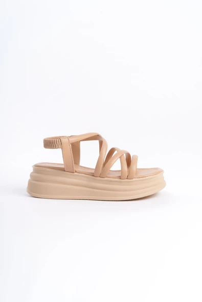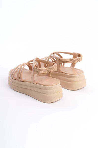 BELLA Lastikli Şerit Detaylı Ortopedik Taban Kadın Sandalet CTT - Ten