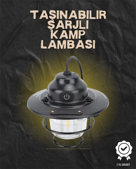 USB Şarjlı Retro LED Kamp Feneri – 4 Işık Modu, Su Geçirmez, Taşınabilir