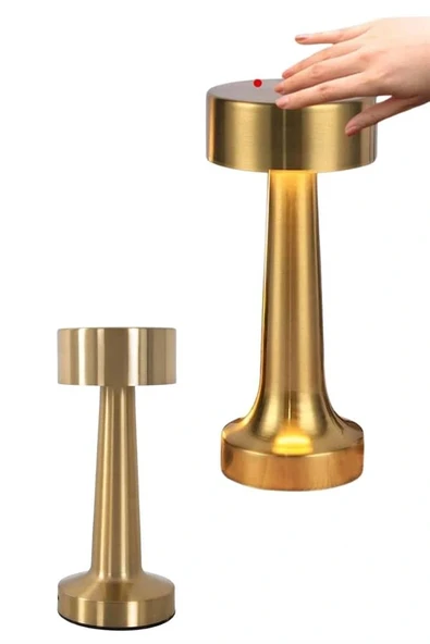 Altın Rengi Masa ve Gece Lambası Dokunmatik Şarjlı Masa Lambası