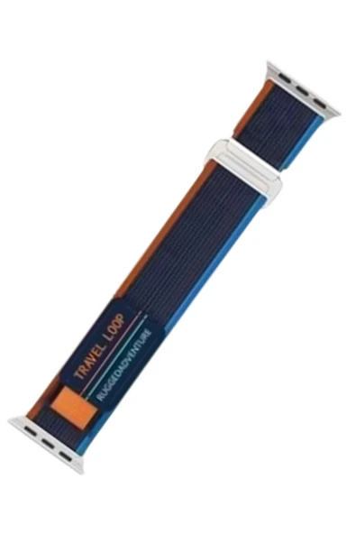 TNR Apple Watch 38mm Alice Kumaş Kordon - Mavi-Turuncu