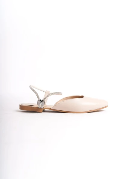 CAROLINE Lastikli Ortopedik Rahat Taban Bilekten Taş Detaylı Kadın Babet Ayakkabı CKT - Krem