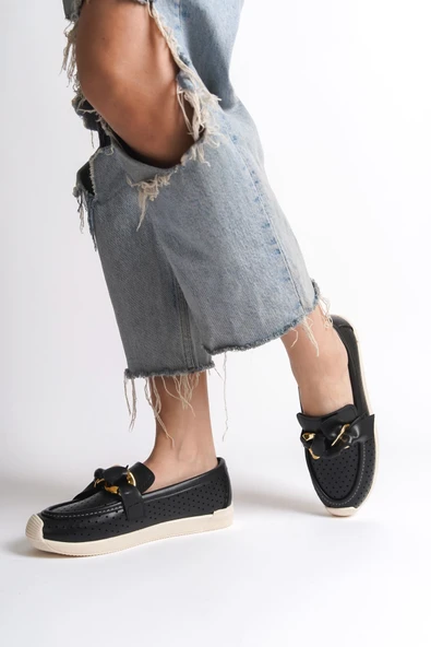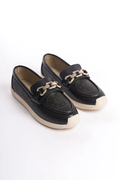 LYDIA Bağcıksız Ortopedik Rahat Taban Kalp Desenli Kadın Babet Ayakkabı CKT - Siyah