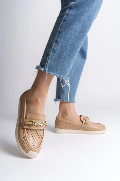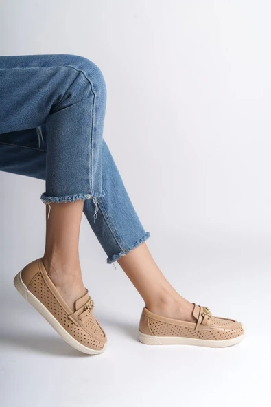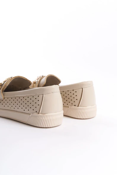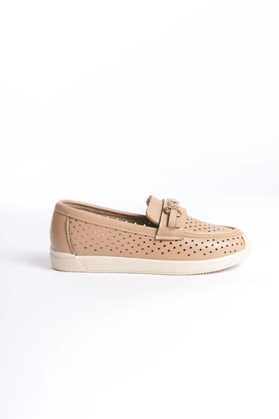 LILY Bağcıksız Ortopedik Rahat Taban Kalp Desenli Kadın Babet Ayakkabı CKT - Ten