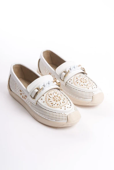 KAYLEE Bağcıksız Ortopedik Rahat Taban Toka Detaylı Kadın Babet Ayakkabı CKT - Beyaz