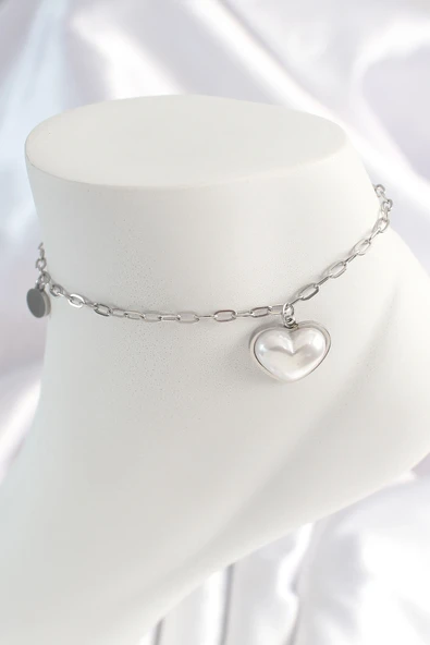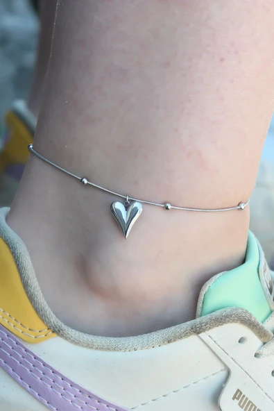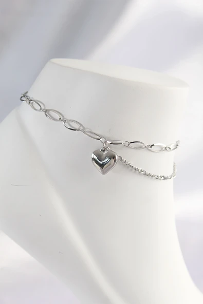 316L Çelik Gümüş Renk Kalp Model Kadın Halhal