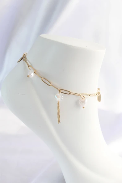 316L Çelik Gümüş Renk Sallantı Topçuk Zincir Model Kadın Halhal