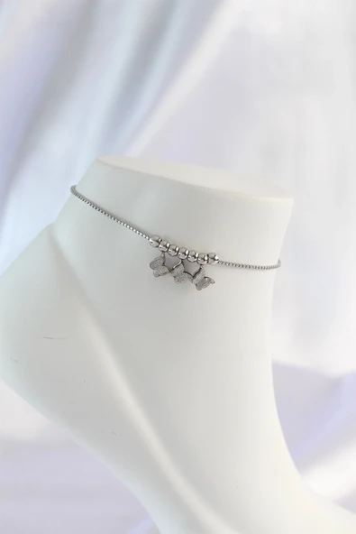 316L Çelik Gümüş Renk Simli Kelebek Model Kadın Halhal
