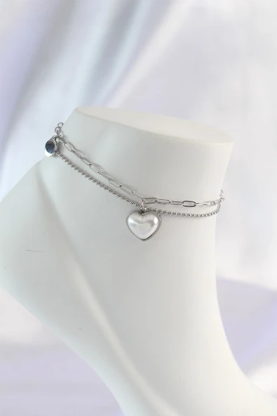 316L Çelik Gümüş Renk Kalp Figür Kadın Halhal