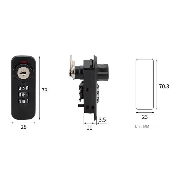Powermaster PM-26731 4 Haneli Şifreli Ve Anahtarlı Mekanik Siyah Çekmece Dolap Kilidi (Sol)