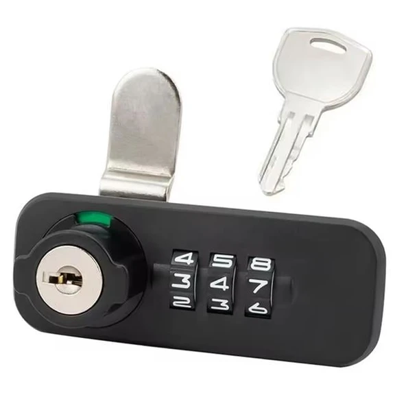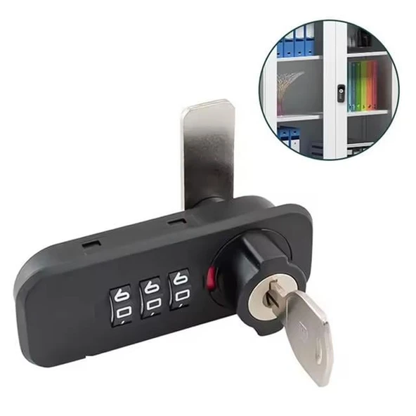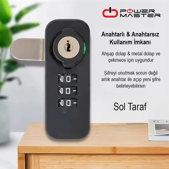 Powermaster PM-26725 3 Haneli Şifreli Ve Anahtarlı Mekanik Siyah Çekmece Dolap Kilidi (Sol)