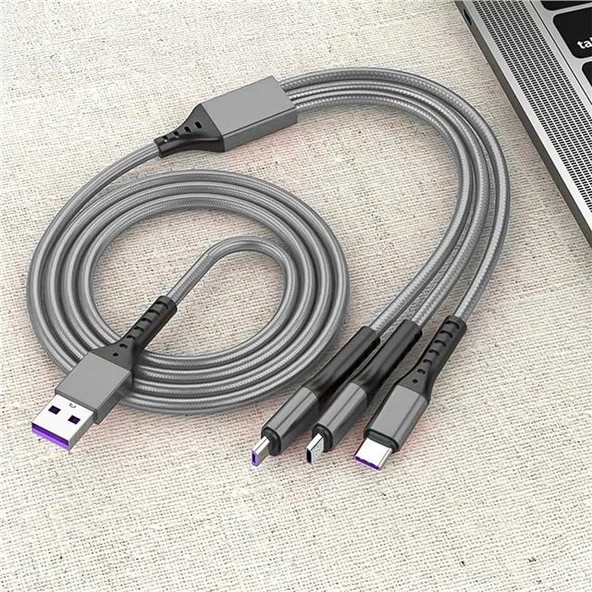 Powermaster PM-26335 3 IN 1 Gümüş 1.2 Metre Şarj Kablosu