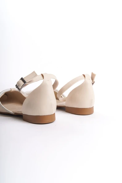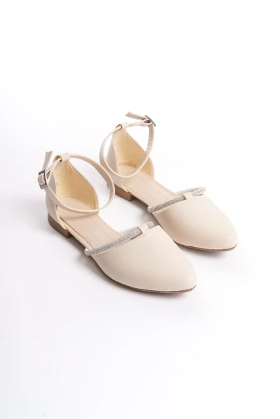 CAROLINE Lastikli Ortopedik Rahat Taban Bilekten Taş Detaylı Kadın Babet Ayakkabı CKT - Krem