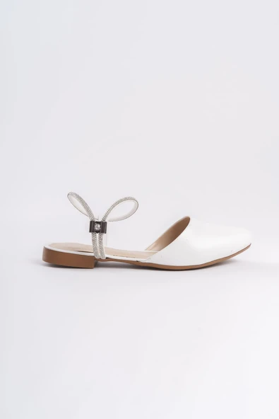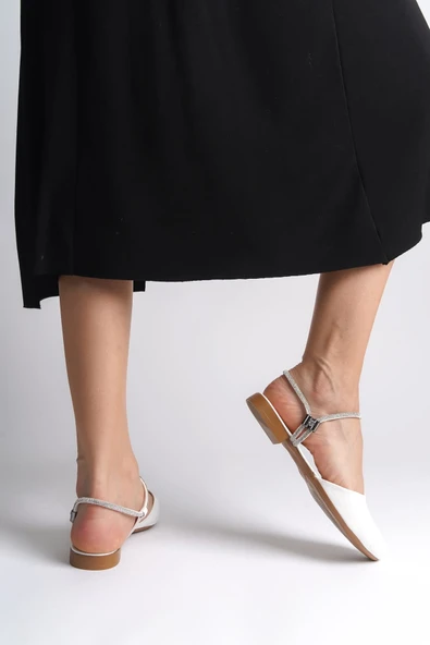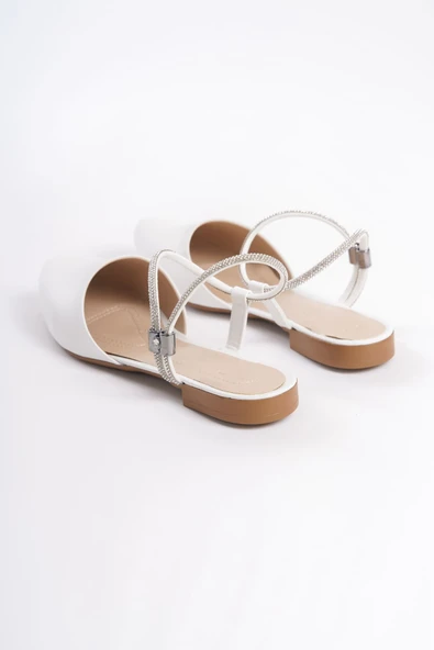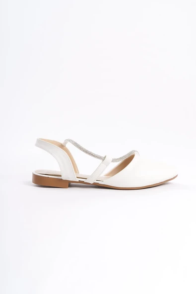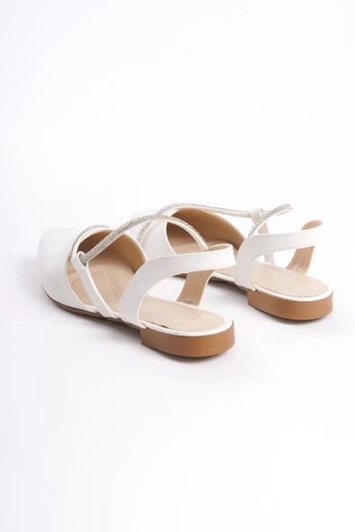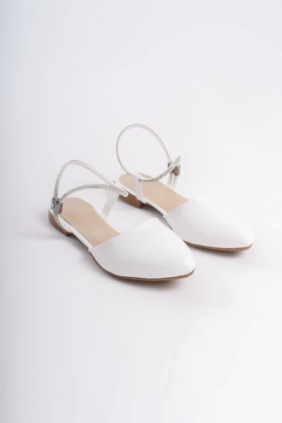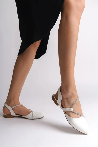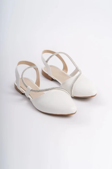 CAROLINE Lastikli Ortopedik Rahat Taban Bilekten Taş Detaylı Kadın Babet Ayakkabı CKT - Beyaz