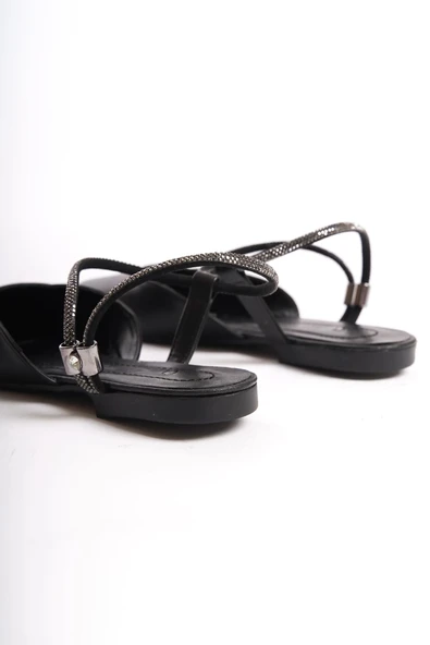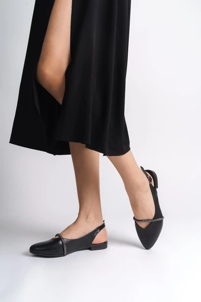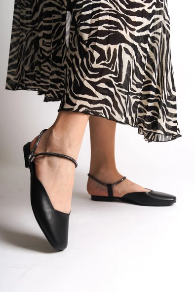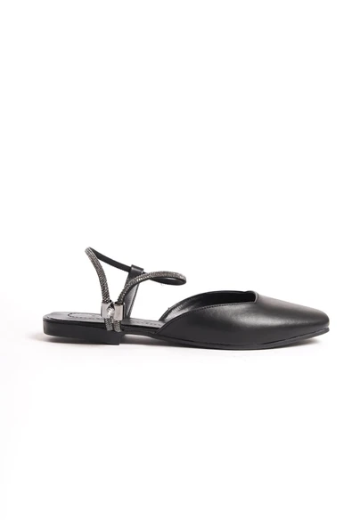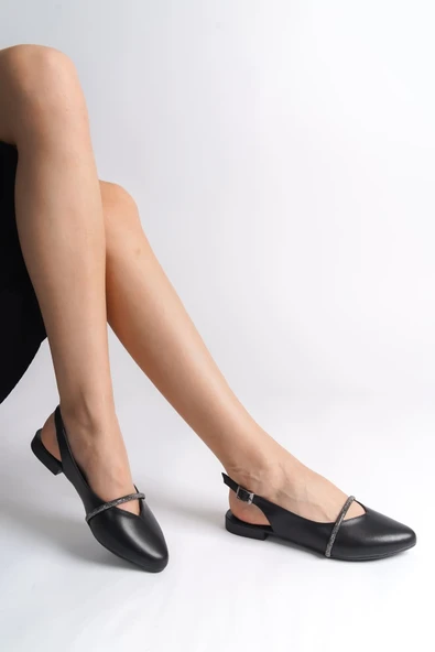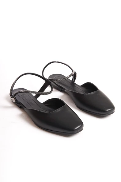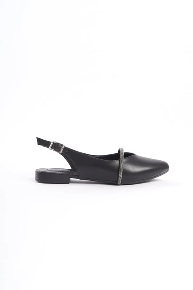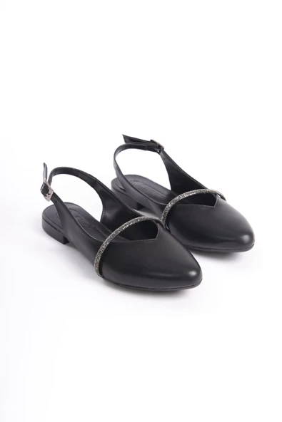 CAROLINE Lastikli Ortopedik Rahat Taban Bilekten Taş Detaylı Kadın Babet Ayakkabı CST - Siyah