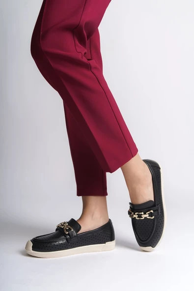 MONICA Tokalı Ortopedik Rahat Taban Taş Detaylı Kadın Babet Ayakkabı CST - Siyah