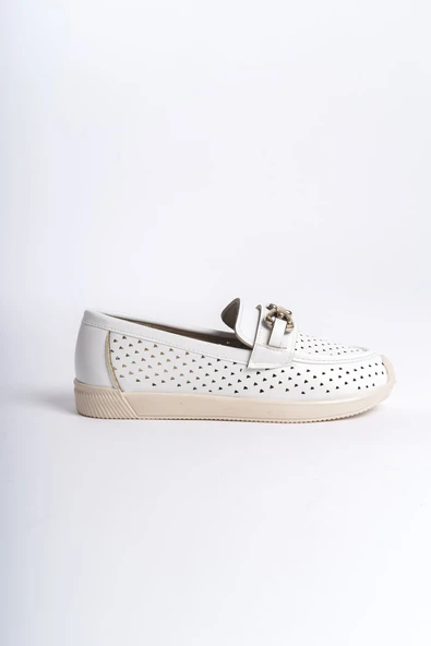MONICA Tokalı Ortopedik Rahat Taban Taş Detaylı Kadın Babet Ayakkabı CKT - Beyaz