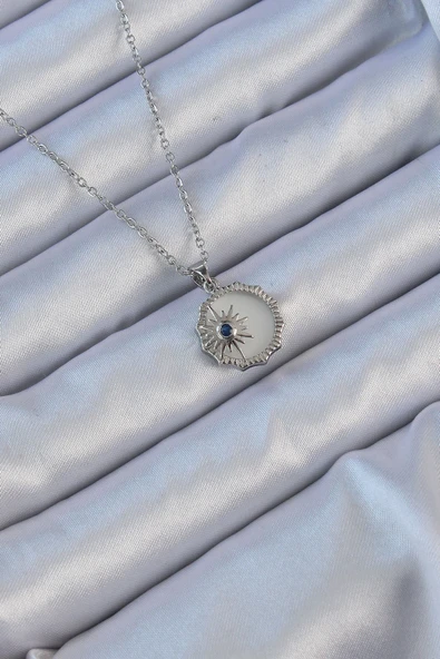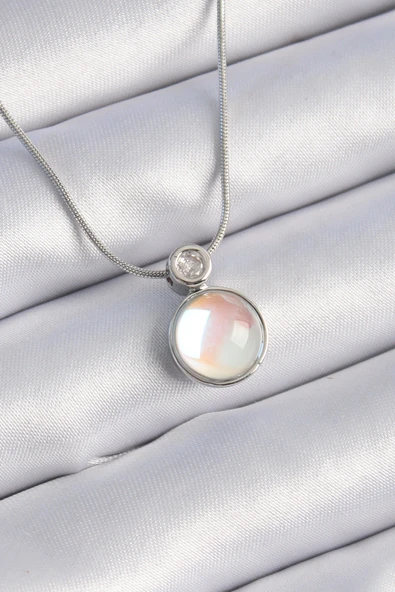 316L Çelik Gümüş Renk Beyaz Sedefli Vintage Model Kadın Kolye
