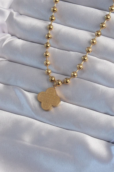 316L Çelik Top Zincirli Gold Renk İşlemeli Yonca Model Kolye