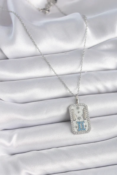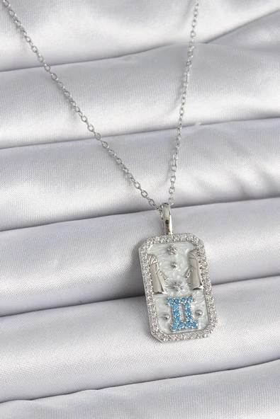 316L Çelik Gümüş Renk Zincir İkizler Burcu Zirkon Taşlı Kadın Kolye