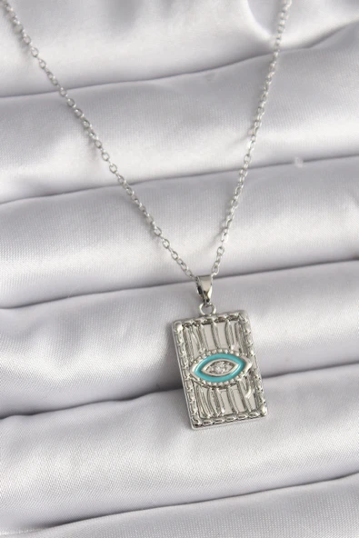 316L Çelik Gümüş Renk Zincir Göz İşlemeli Madalyon Model Kadın Kolye