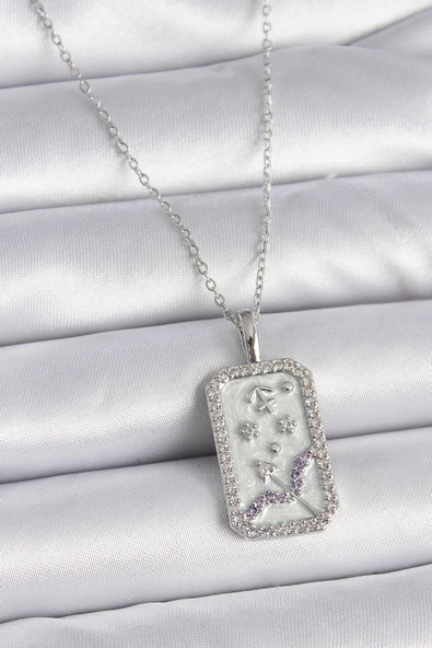316L Çelik Gümüş Renk Zincir Yay Burcu Zirkon Taşlı Kadın Kolye