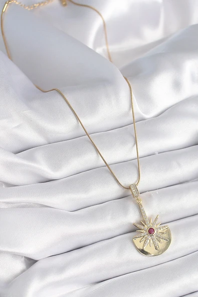 316L Çelik Zincir Altın Renk Zirkon Taşlı Ay Kolye