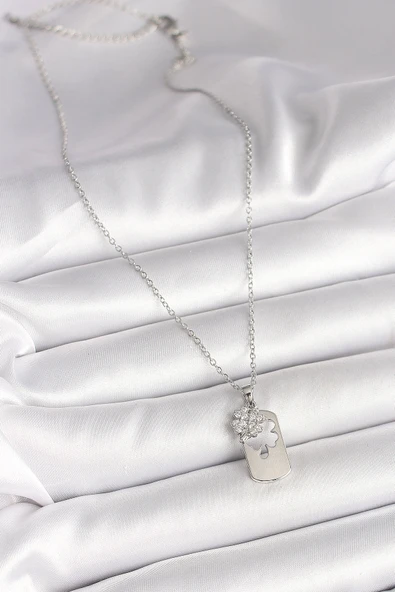 316L Çelik Gümüş Renk İşleme Detaylı Yonca Model Kadın Kolye