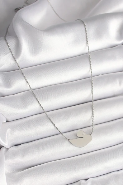 316L Çelik Gümüş Renk Kalp Detay Mektup Figür Charm Model Kadın Kolye