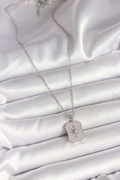 316L Çelik Zincir Gümüş Renk Zirkon Taşlı Kutup Yıldızı Kolye