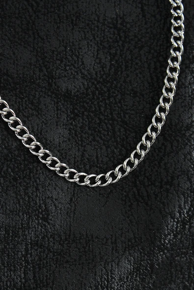 316L Çelik Klasik Oval Zincir Model Gümüş Renk Erkek Kolye