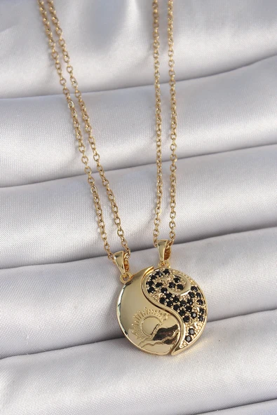 316L Çelik Gold Renk Zincir Zirkon Taşlı Ying Yang Model Gün Batımı İşlemeli Arkadaşlık Kadın Kolye