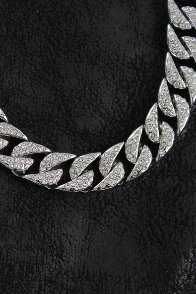Pirinç Zirkon Taşlı Cuba Gurmet Model Gümüş Renk Erkek Kolye