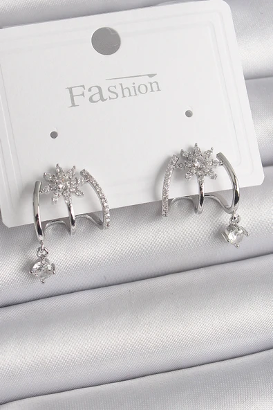 Pirinç Gümüş Renk 3'lü Sallantı Zirkon Taşlı Küpe