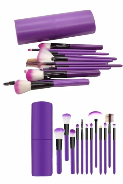 12 Parça Makyaj Fırça Seti Profesyonel Fondöten Allık Far Kontür Fırçası