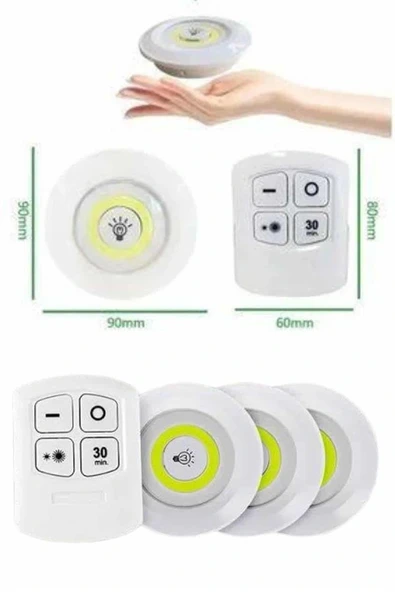 Yapışkanlı 3'lü Spot Led Işık Lamba Montajsız Pilli Uzaktan Kumandalı