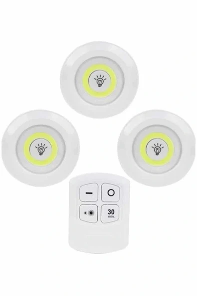 Led Lamba 3'lü Uzaktan Kumandalı Yapışkanlı Beyaz Işık