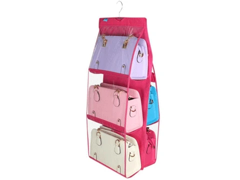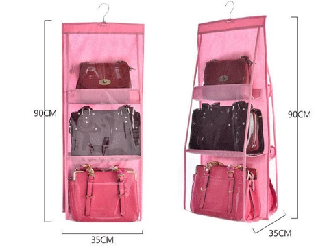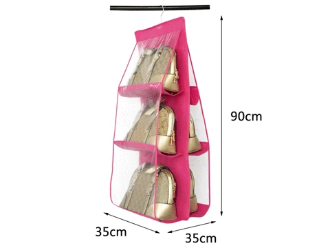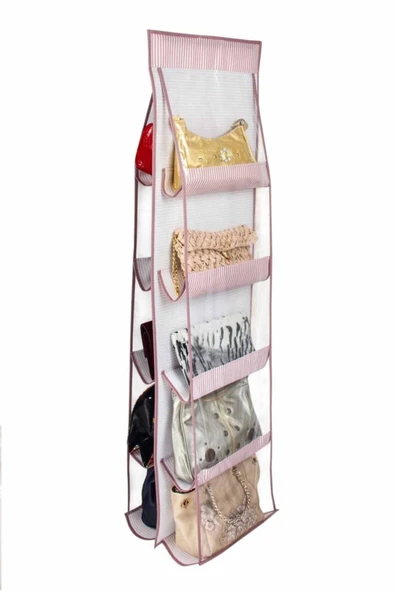 6 Gözlü Pratik Dolap İçi Çanta Askılığı/Organizer (Pembe)