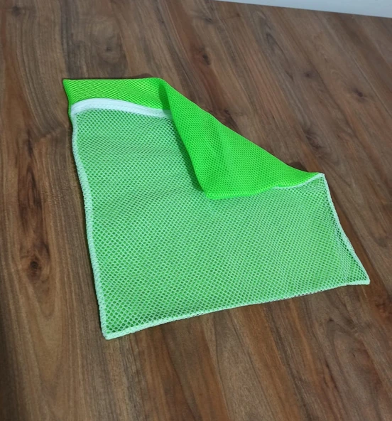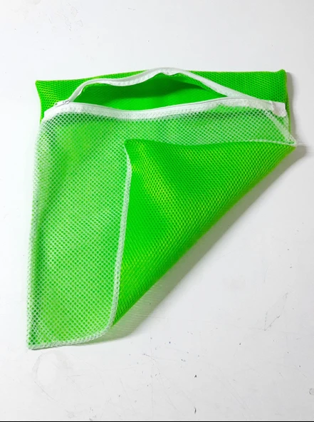 Yeşil - Fermuarlı - Hassas Çamaşır Terlik Ayakkabı Yıkama Filesi Büyük Boy